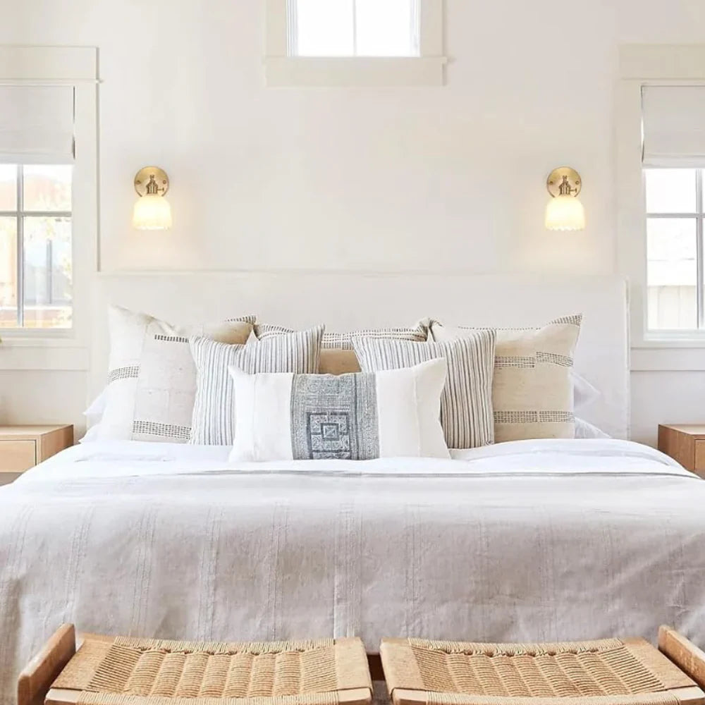 Bring timeless elegance to your interiors with this vintage brass wall sconce, featuring a delicate tulip-shaped glass shade. The combination of brass or wrought iron with frosted glass adds a refined, classic charm, while its compact size makes it perfect for bedside areas, hallways, or cosy reading corners. A stylish choice for creating warm, inviting ambience in any space.