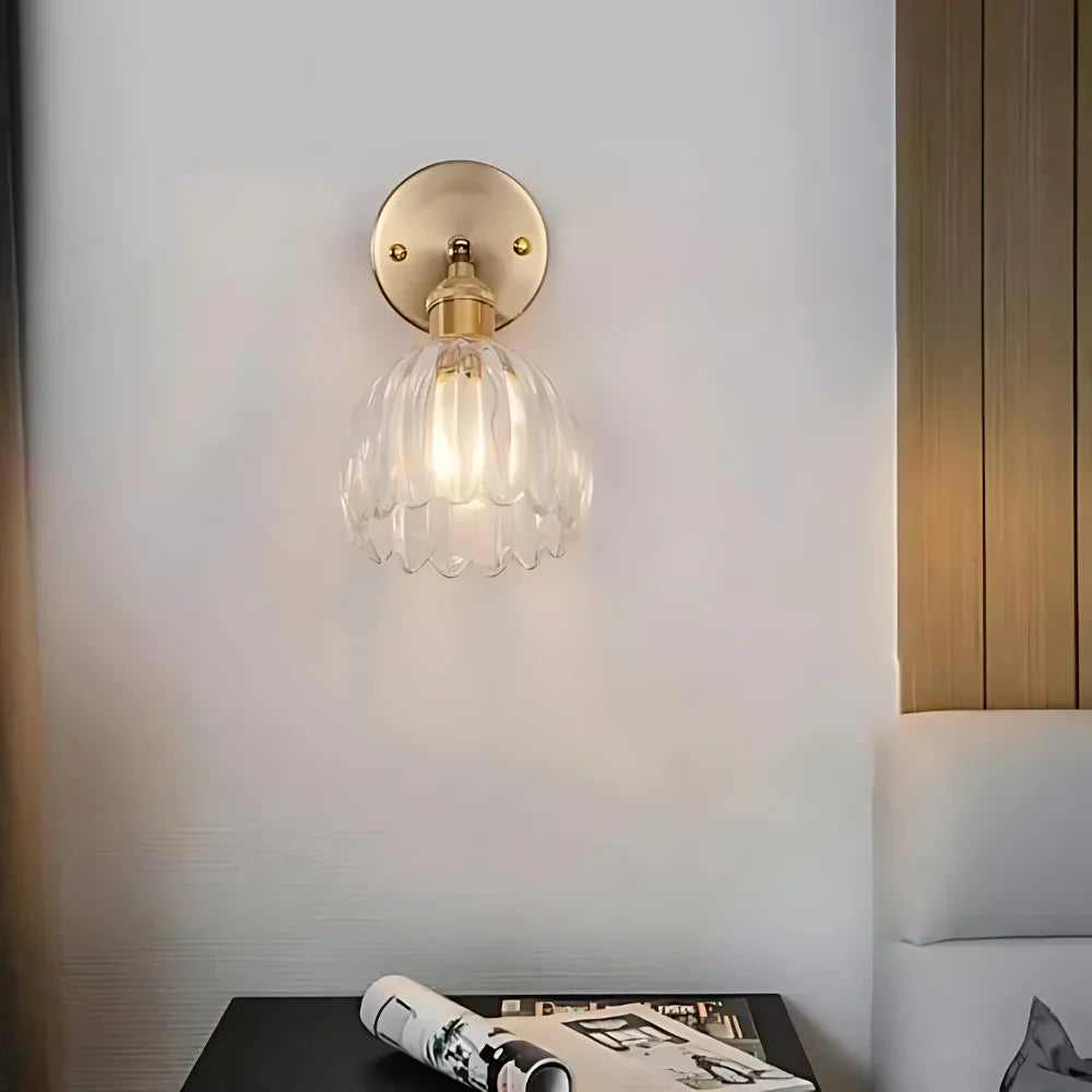 Vintage Brass Tulip Glass Wall Sconce 1-Light