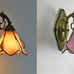 Bring a touch of timeless artistry into your home with this vintage Tiffany-style wall light. Featuring a hand-crafted stained glass shade shaped like a delicate flower, it creates a soft, colourful glow that enriches any interior with warmth and charm. Perfect for hallways, bedrooms, or reading nooks, this wall light blends classic craftsmanship with elegant floral design for an inviting atmosphere.