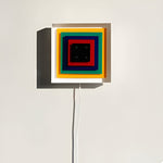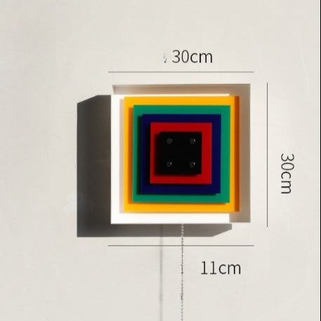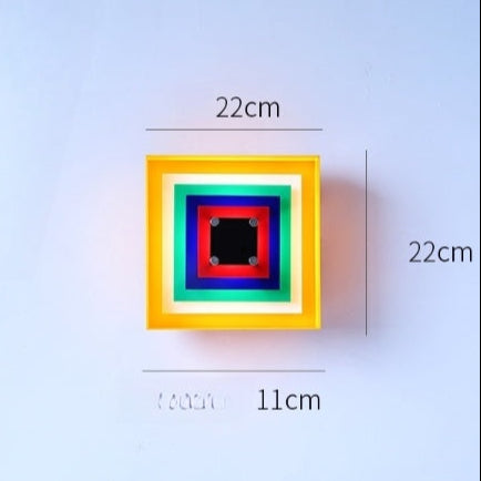 Add a bold artistic touch to your interiors with this Memphis Bauhaus square wall sconce. Crafted with a sleek acrylic front and a sturdy wrought iron frame, it reflects the playful geometry and vibrant character of the Memphis design style. Its warm white LED light creates a soft yet vivid glow, making it a standout feature for modern living spaces.