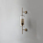 Sleek and contemporary, this modern wall light features a refined glass cylinder shade paired with a durable iron frame. Designed to create a soft, ambient glow, it adds understated elegance to any interior. Perfect for hallways, living rooms, or bedrooms, its slim silhouette and clean lines make it a versatile accent for both residential and commercial spaces.