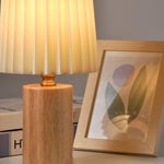 Bring soft elegance and timeless charm to your space with this vintage Korean-style pleated fabric table lamp. Featuring a warm solid wood base and a cylindrical pleated shade, it creates a cosy and balanced ambience perfect for bedrooms, living rooms, or reading corners. Its simple, minimalist form blends seamlessly into both modern and traditional interiors.